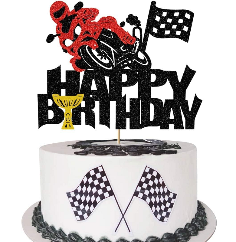Décoration de Gâteau d'Anniversaire de Moto à Paillettes, Thème de Vélo de Course, pour Hommes et Filles, Fournitures de Fête d'Anniversaire
