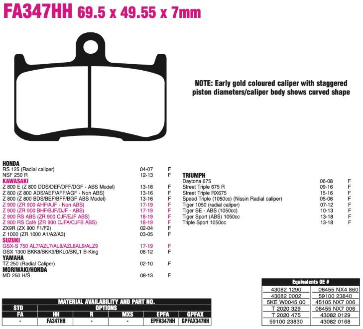 Plaquettes de frein de moto Fa347 pour Honda Rs 125 Moto Kawasaki Zx9r Z800 Z900 Z1000 Suzuki Gsx 750 1300