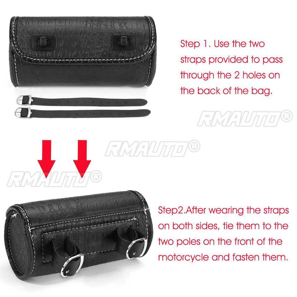 Sac de fourche de moto en cuir PU, pochette à outils pour guidon, sac de rangement enroulable avec 2 sangles pour Cruiser Custom Chopper Bobber