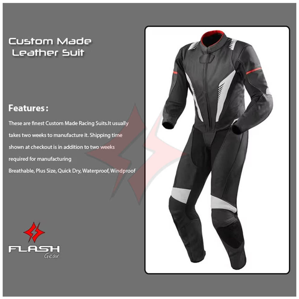 Motorcycle Leather Race Suit Custom Design Printed Winter Sportswear Black White Fast Racing Biker Premium Protection