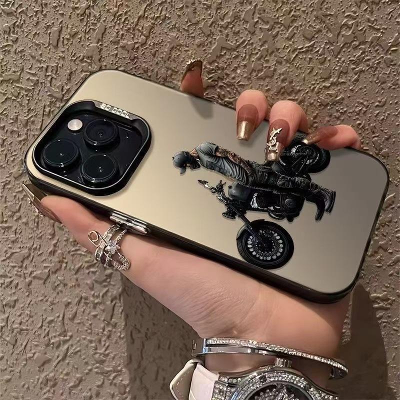 Coque de téléphone portable en TPU pour Iphone X Xr Xs 11 12 13 14 15 16 17 Pro Max Moto Style Homme Impression Argent Électrolytique