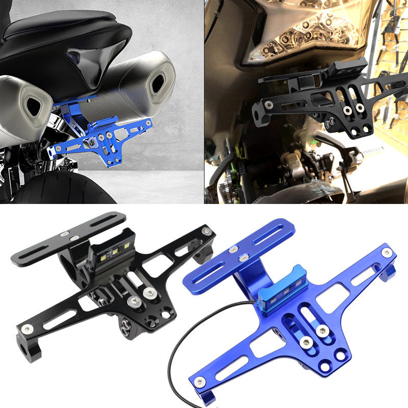 Support de plaque d'immatriculation arrière modifié pour moto avec éclairage LED rétractable