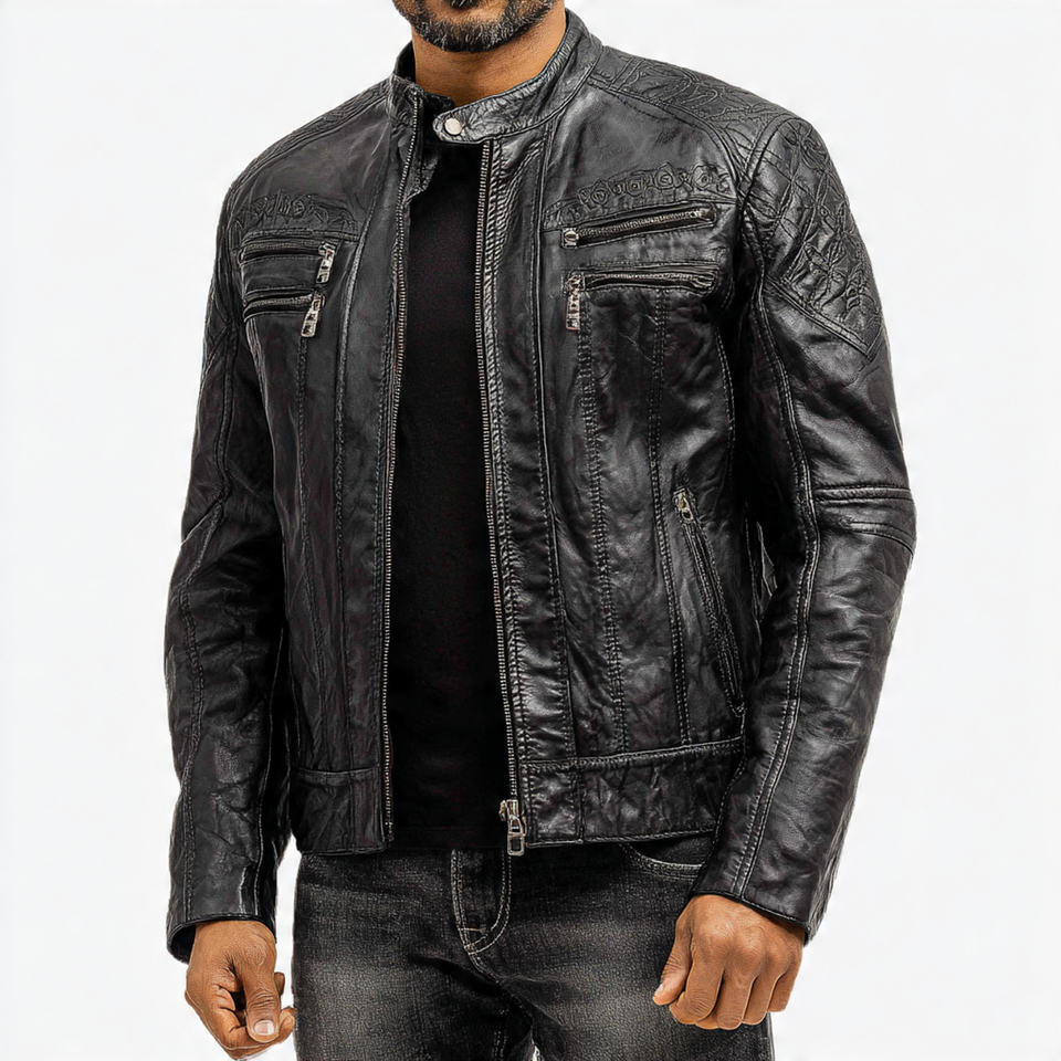 Blouson de course en cuir pour homme
