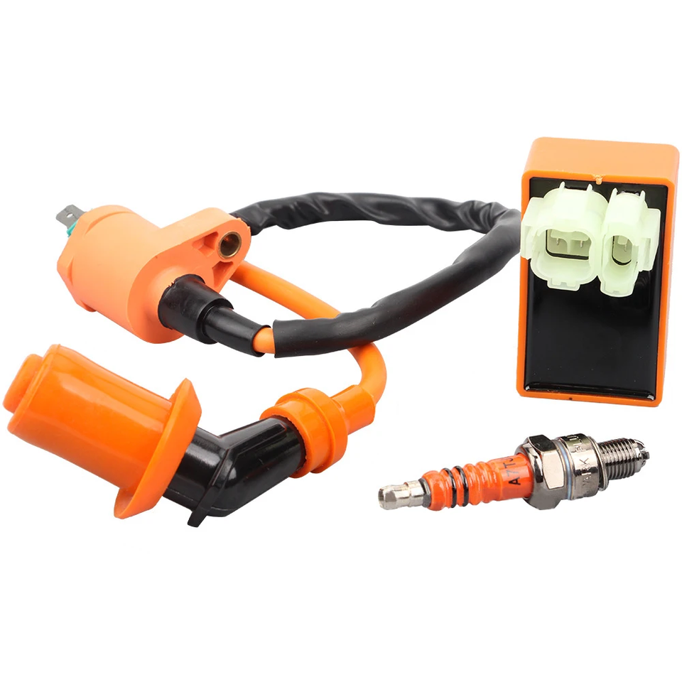 Bougie d'allumage de bobine d'allumage de course de moto et kit de boîte CDI pour les moteurs chinois GY6 50cc 110cc 125cc 150cc 4 temps Scooters, VTT