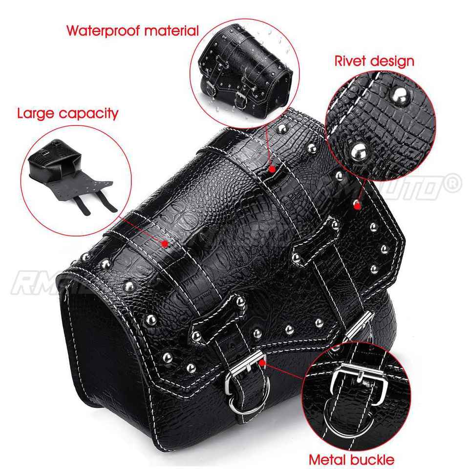 Sacs de selle de moto, pochette de rangement pour bagages, sacoches étanches, style cuir de crocodile noir, universel, Cafe Racer personnalisé