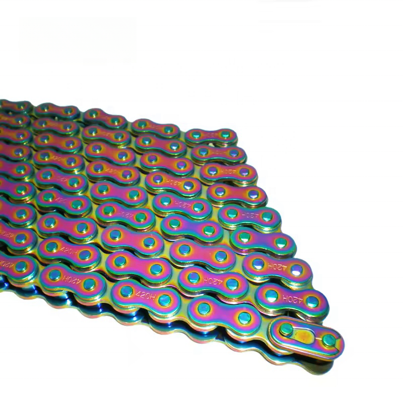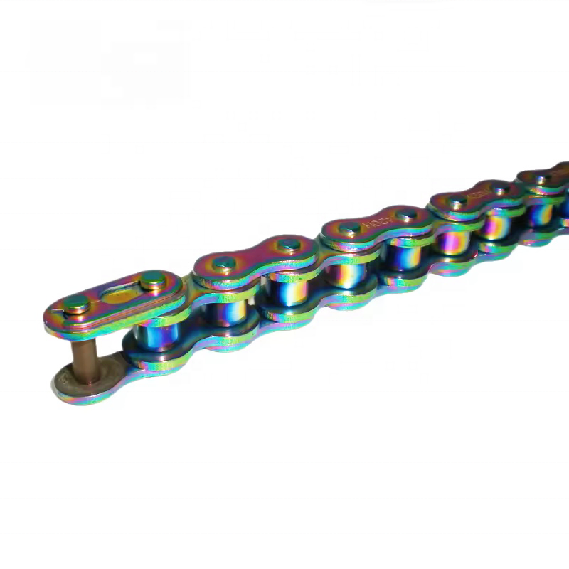 Chaîne à rouleaux de transmission de moto Rainbow Jet Fuel multicolore 415 420 428 520 525 530, chaînes à rouleaux à usage intensif avec joint torique et joint en X