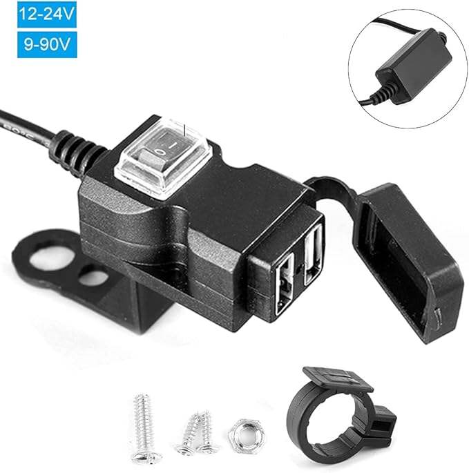 Double chargeur USB rapide pour moto avec interrupteur marche/arrêt, répartiteur automatique pour téléphone, tablette, GPS (12-24v)