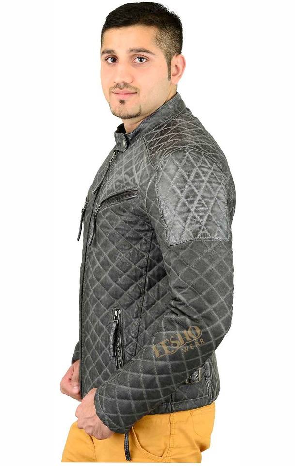 Ash Grey Colour leather jacket:Washed Leather Jacket