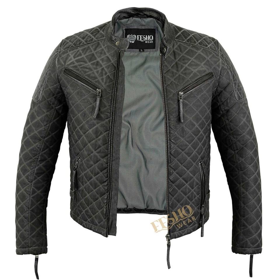 Waxed Men Leather and cotton Jacket:Genuine Leather and cotton Jacket for men