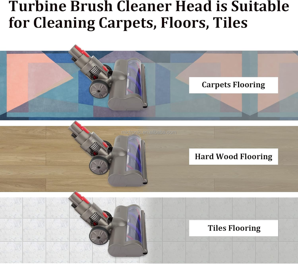 Tête de nettoyage à brosse Motorhead Turbine compatible avec l'aspirateur Dysons V7 V8 V10 V11 V15 pour tapis, sols, carreaux