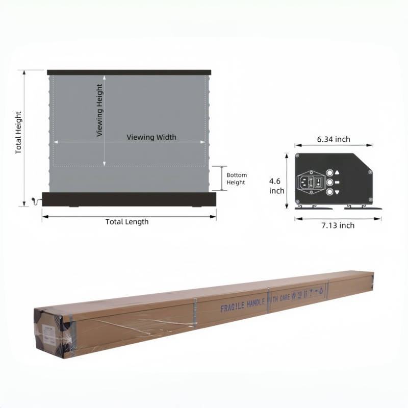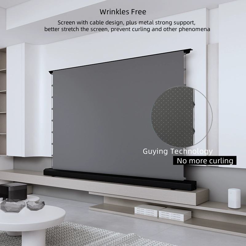 Écran de projection électrique motorisé invisible pour sol - Matériau PVC, surface micro-perforée acoustiquement transparente, 72"-150"