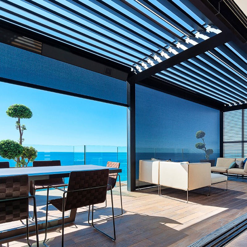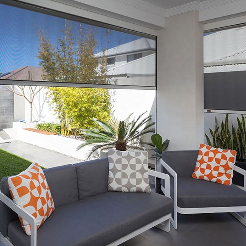 Stores à glissière motorisés pour fenêtres extérieures Rideaux de patio imperméables Ombre en métal Caractéristiques coupe-vent et pare-soleil