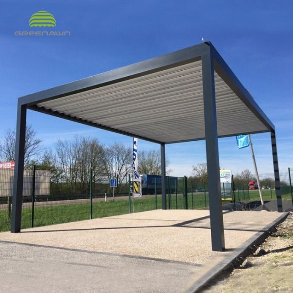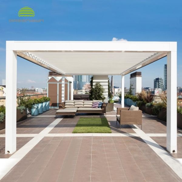 Pergola motorisée verticale, auvent imperméable, volets de toit avec capteur de pluie