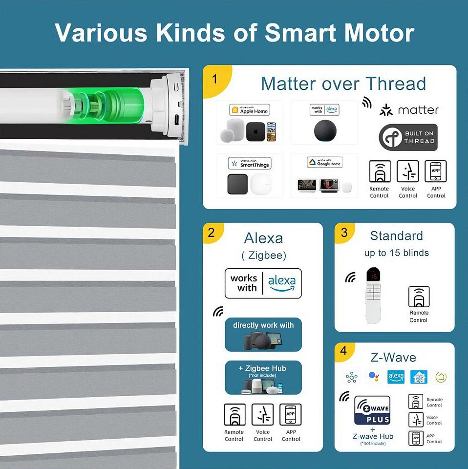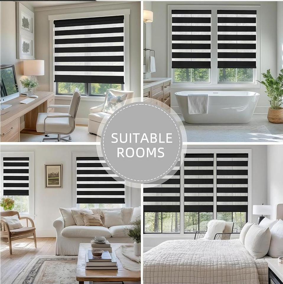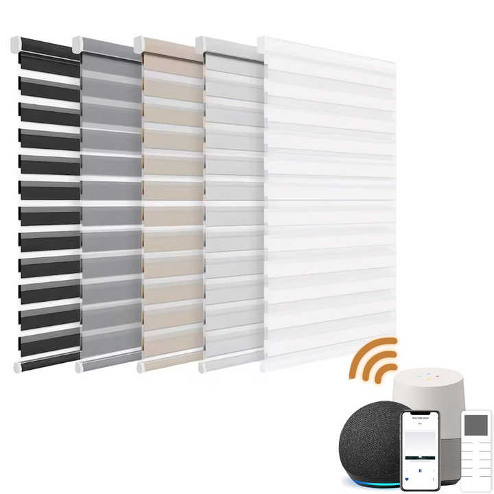 Stores zébrés motorisés électriques intelligents avec télécommande Wi-Fi et Bluetooth Alexa pour usage intérieur en cuisine
