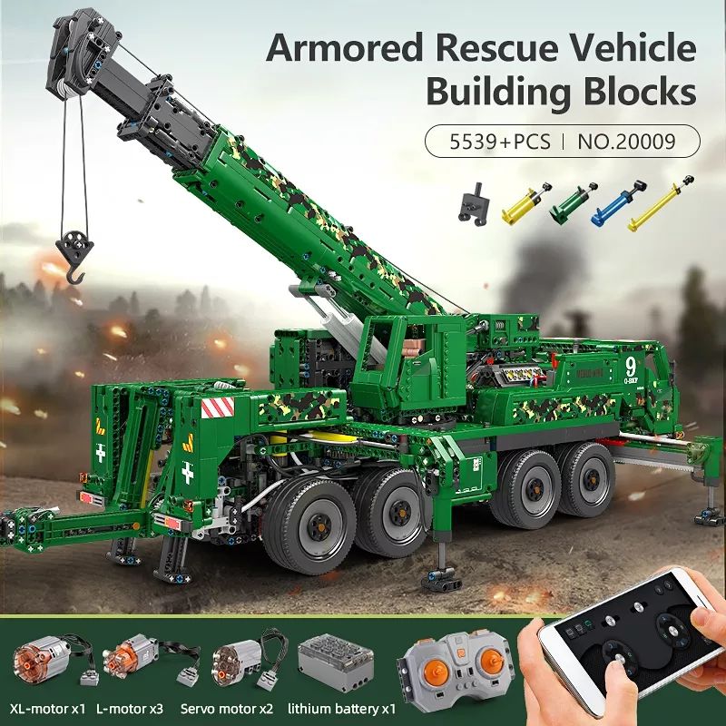 Moule King 20009 5539 pièces technique télécommande ingénierie grue pneumatique blindé récupération grue blocs de construction jouets