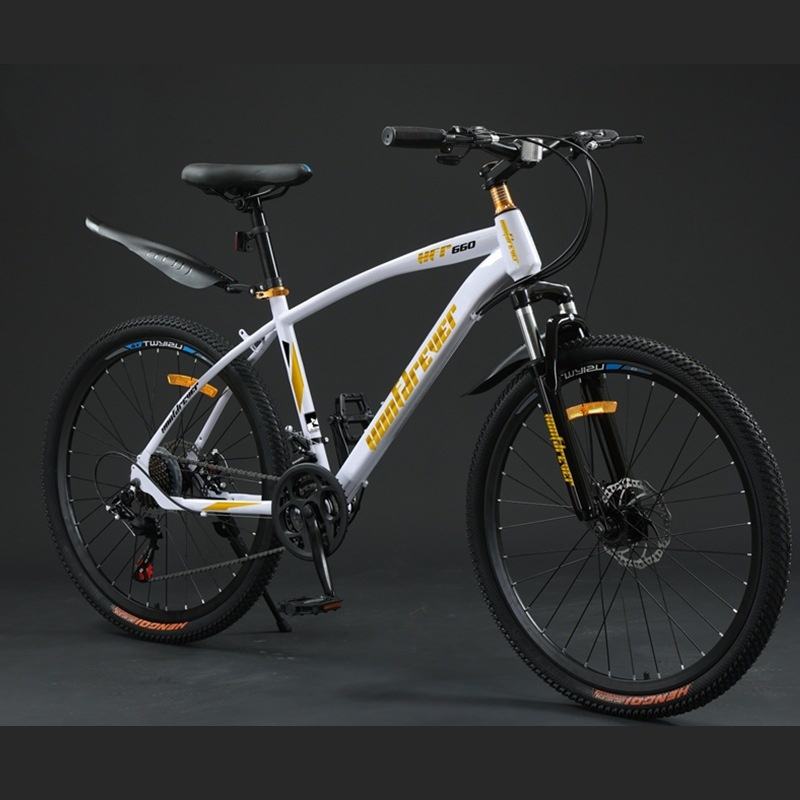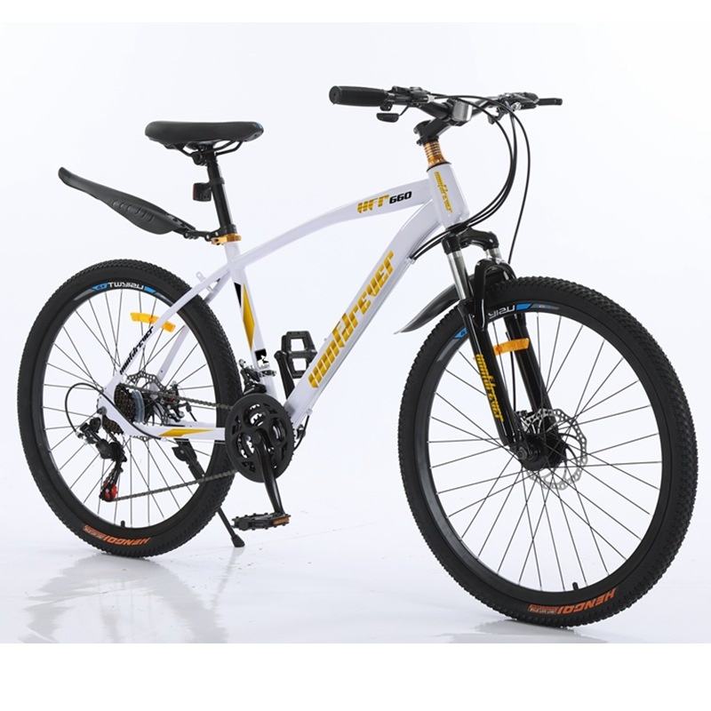 Vélo de montagne 24 pouces 26 pouces 21-30 vitesses, pédale ordinaire, cadre en acier carbone, fourche à suspension à ressort, double frein à disque, 150 kg