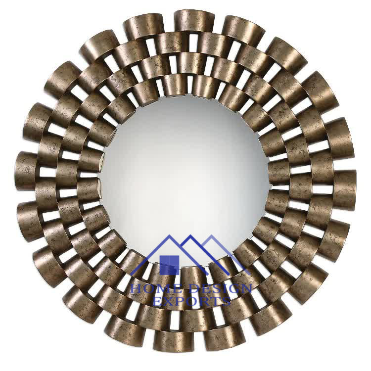 Miroir monté avec cadre rond en métal doré Décoration murale circulaire pour salle de bain Chambre à coucher Couloirs Salon Salle de bain à vendre best-seller