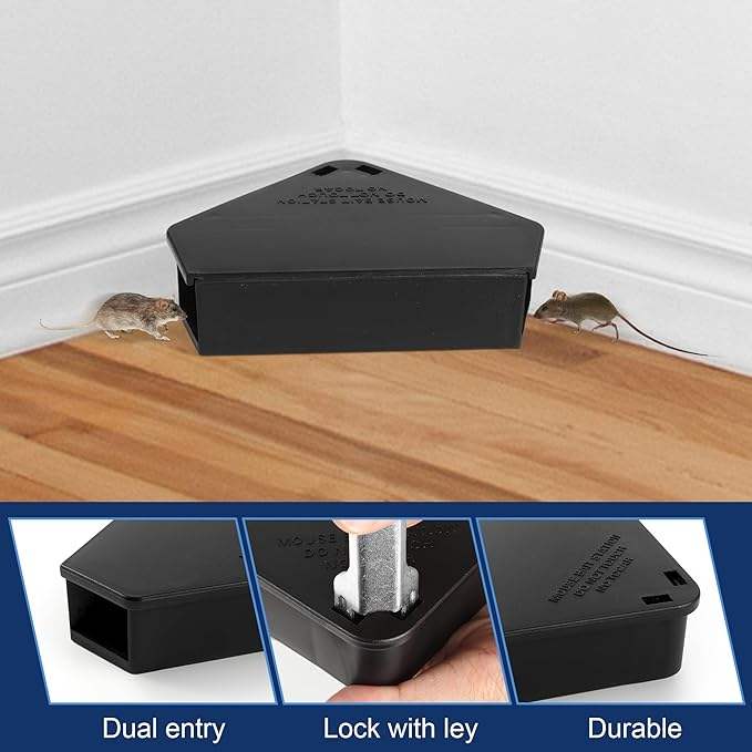 Station d'appât pour souris avec clés, rechargeable, pour extérieur, réutilisable, pour souris et petits rats, boîte de stationnement de poison