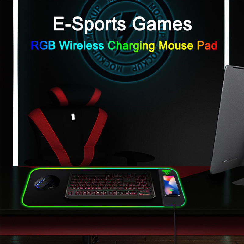 Tapis de souris LED avec chargeur sans fil, en cuir, extra large XXL, pour gamer, logo personnalisé imprimé, tapis de souris de jeu personnalisé, grand tapis de souris RGB