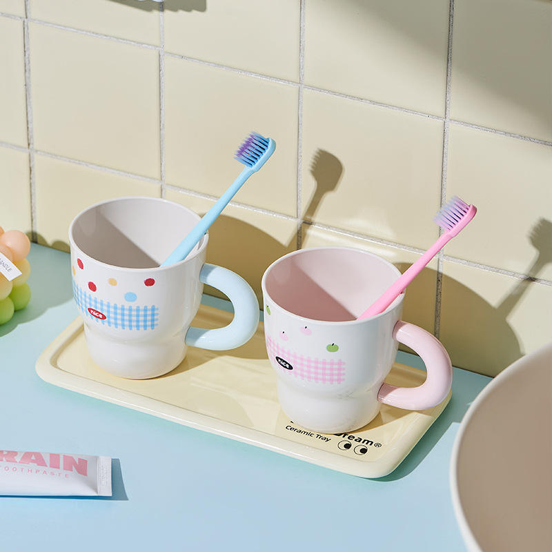 Mouthwash cup, household dental appliance cup with handle, toothpaste, toothbrush