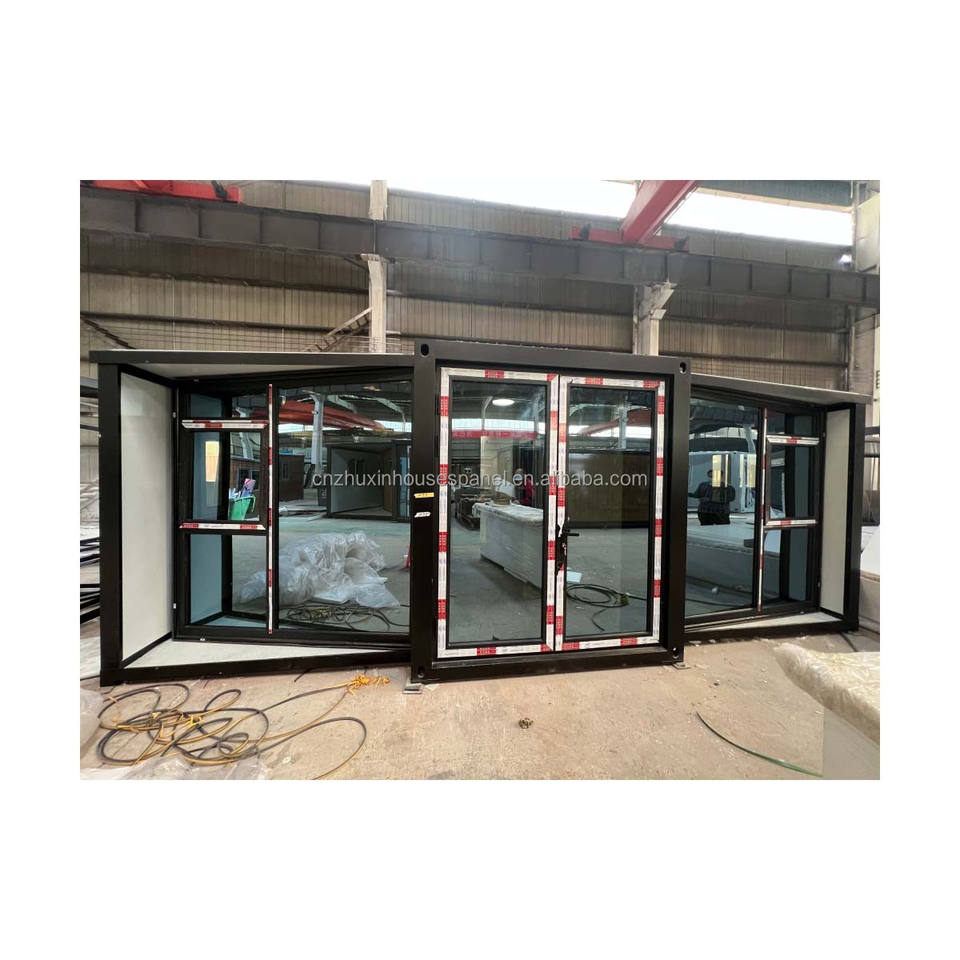 Maison conteneur contemporaine mobile, logement modulaire pour gardien de ferme animale avec extension à double aile et panneaux sandwich