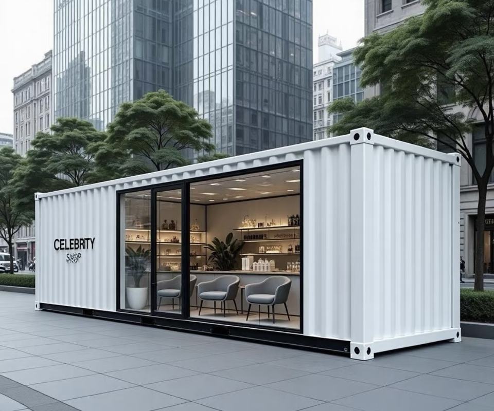 Des conteneurs mobiles de structure en acier sont utilisés pour des vitrines dans les rues commerciales, les marchés de nuit et d'autres endroits
