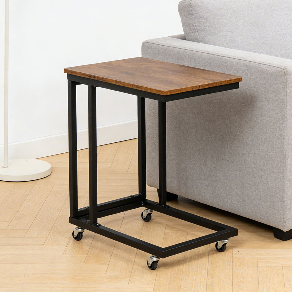 Table d'appoint mobile en bois et métal, table roulante pour canapé et lit, plateau de service pour collations et télévision, pour salon et chambre à coucher