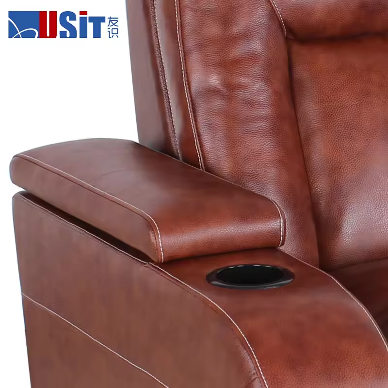Movie Cinema Home Theater Genuine Leather Electric Power Recliner Sofa Set with Table Cup Holder