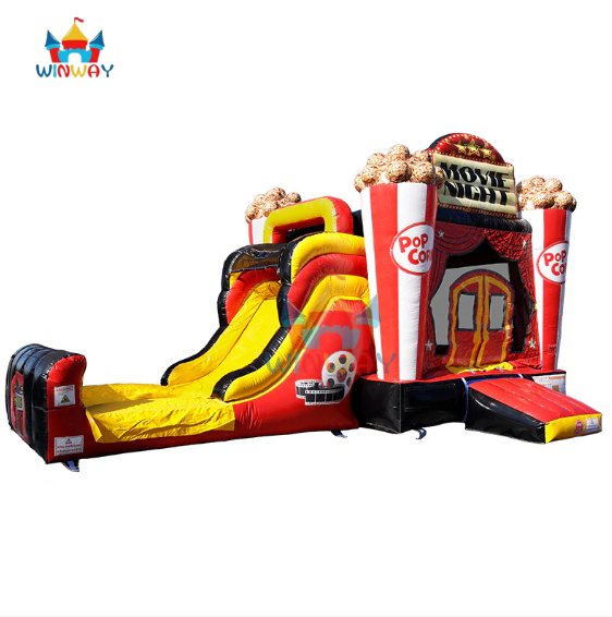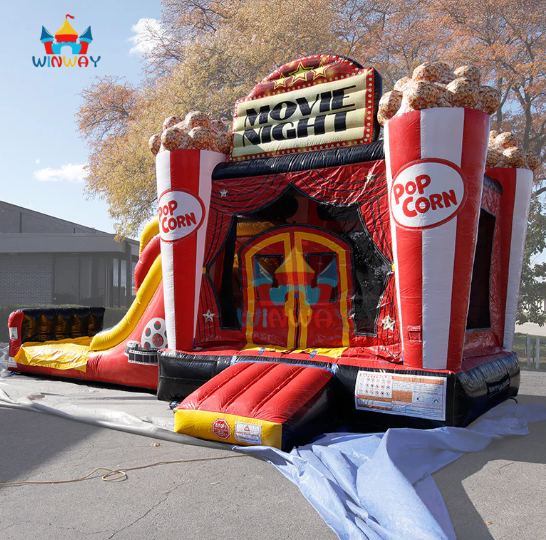 Château gonflable à thème soirée cinéma avec toboggan - Maison de jeu gonflable cinéma popcorn pour enfants, fête commerciale en plein air
