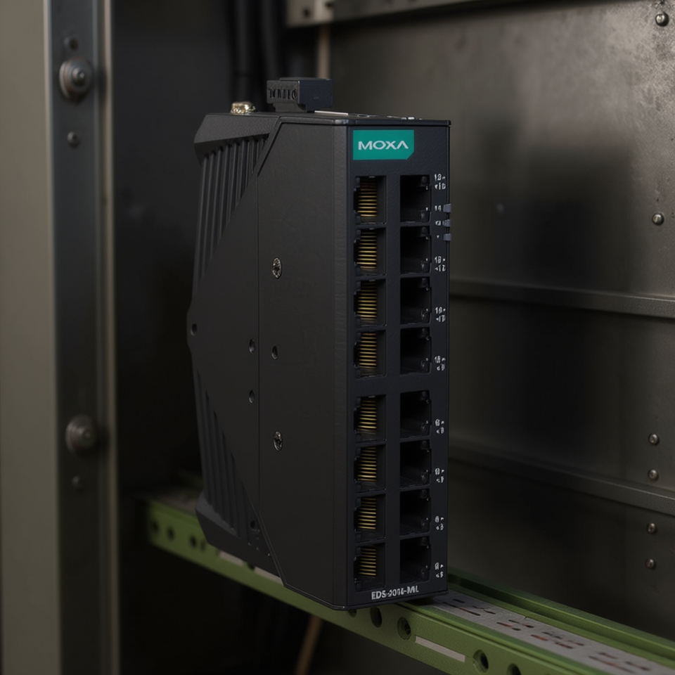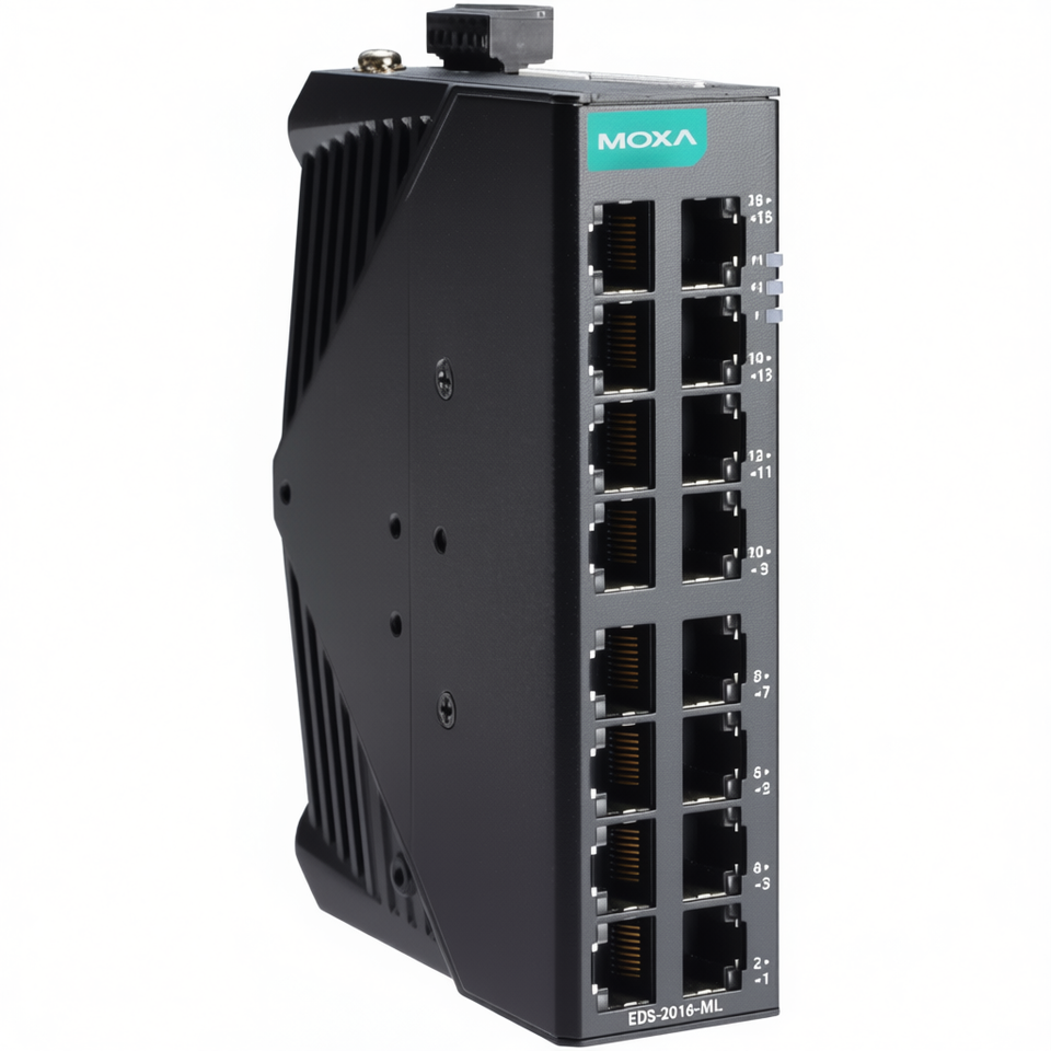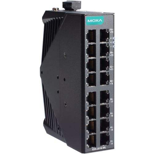 Commutateur Ethernet industriel non géré Moxa EDS-2016-ML-T 16 ports avec alimentation 24V, ports RJ45 1000 Mbps, montage sur rail DIN, IEEE 802.3