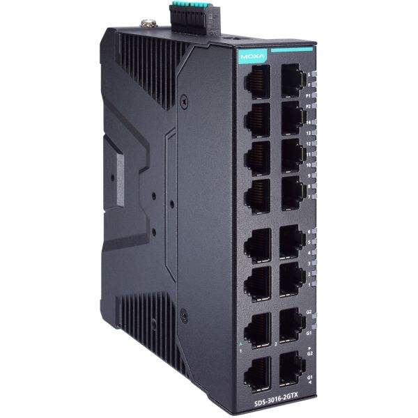 Commutateur géré Moxa SDS-3016-2GTX IEEE 802.3 24V 16 ports Gigabit Ethernet sur rail DIN pour entreprise industrielle