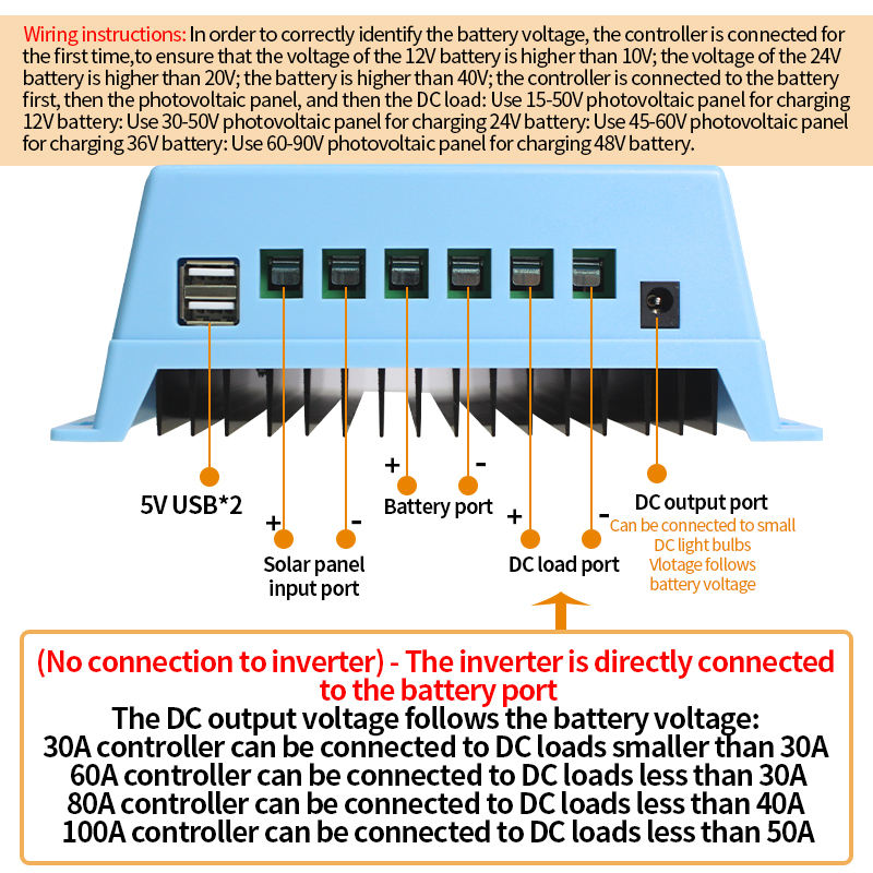 Contrôleur de charge solaire MPPT 100A/80A/60A, identification automatique de la tension de sortie 12V/24V/36V/48V, adapté aux systèmes solaires hors réseau