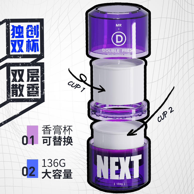 Parfum Solide pour Voiture Mr D Next 136G Double Compartiment Parfum Remplaçable Grande Capacité Décoration Intérieure Éliminateur d'Odeurs