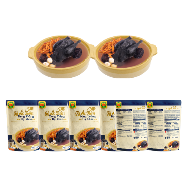 black chicken (30%), cordyceps (1,1%),...Ingredients