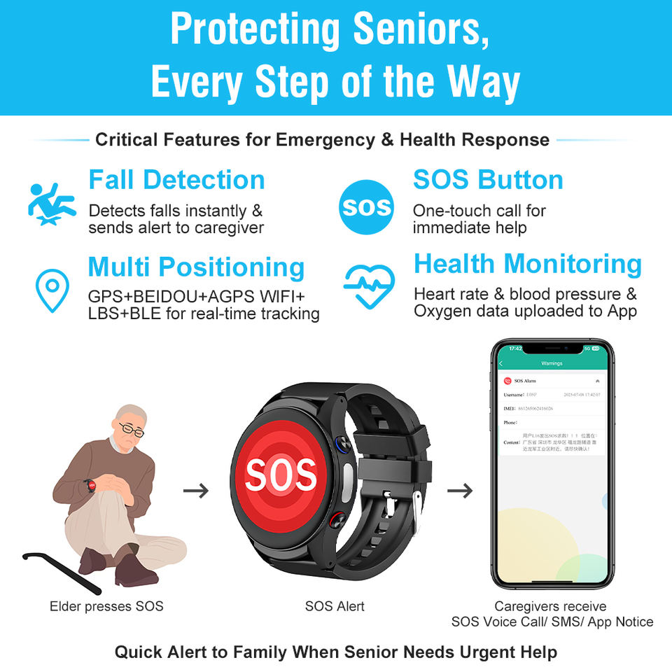 Montre intelligente pour personnes âgées Mrtrack L08P, navigation GPS, télécommande, grand bouton SOS, écran OLED, étanche IP67, bracelet en caoutchouc, 4 jours
