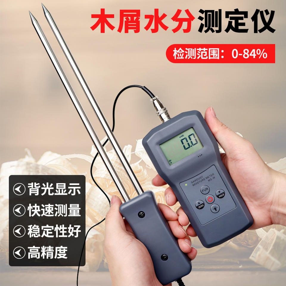 Ms-W Wood Chip Moisture Meter 0-84% Backlit Lcd Display For Sawdust Bamboo Powder Testing
