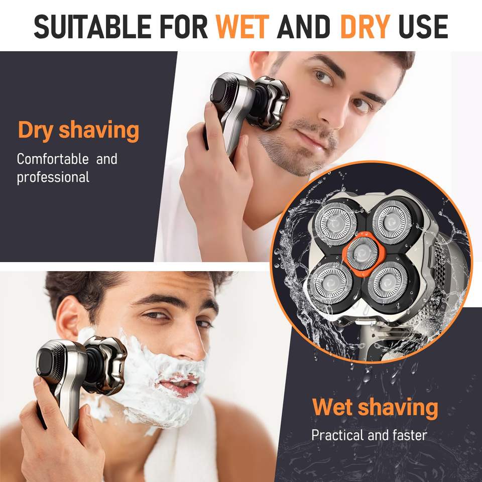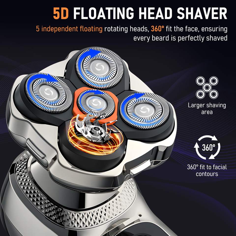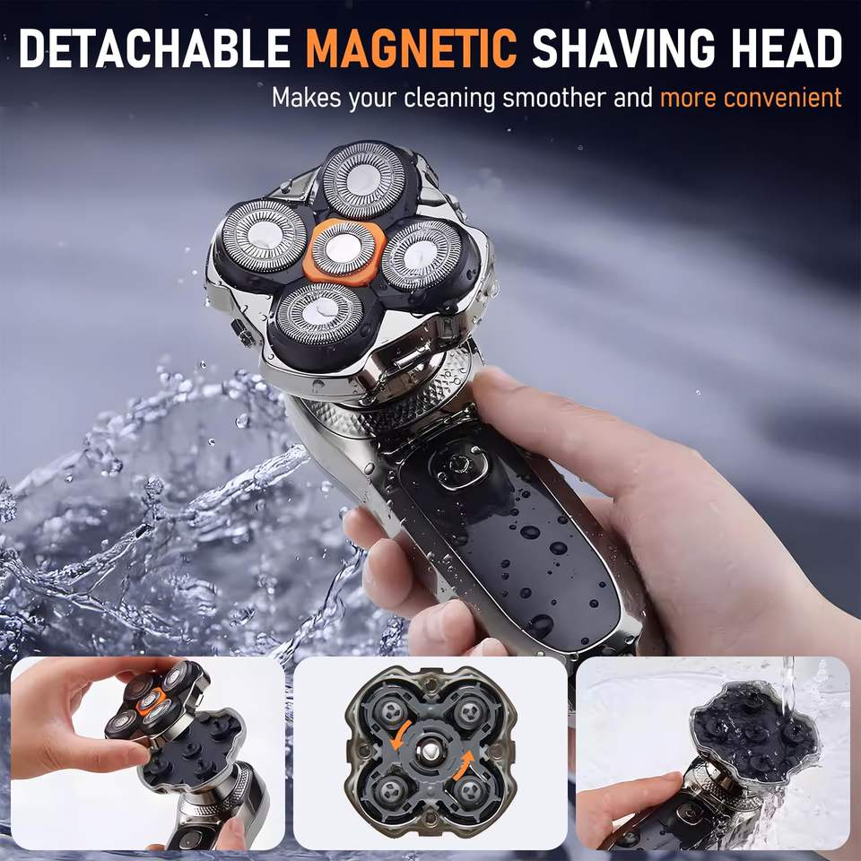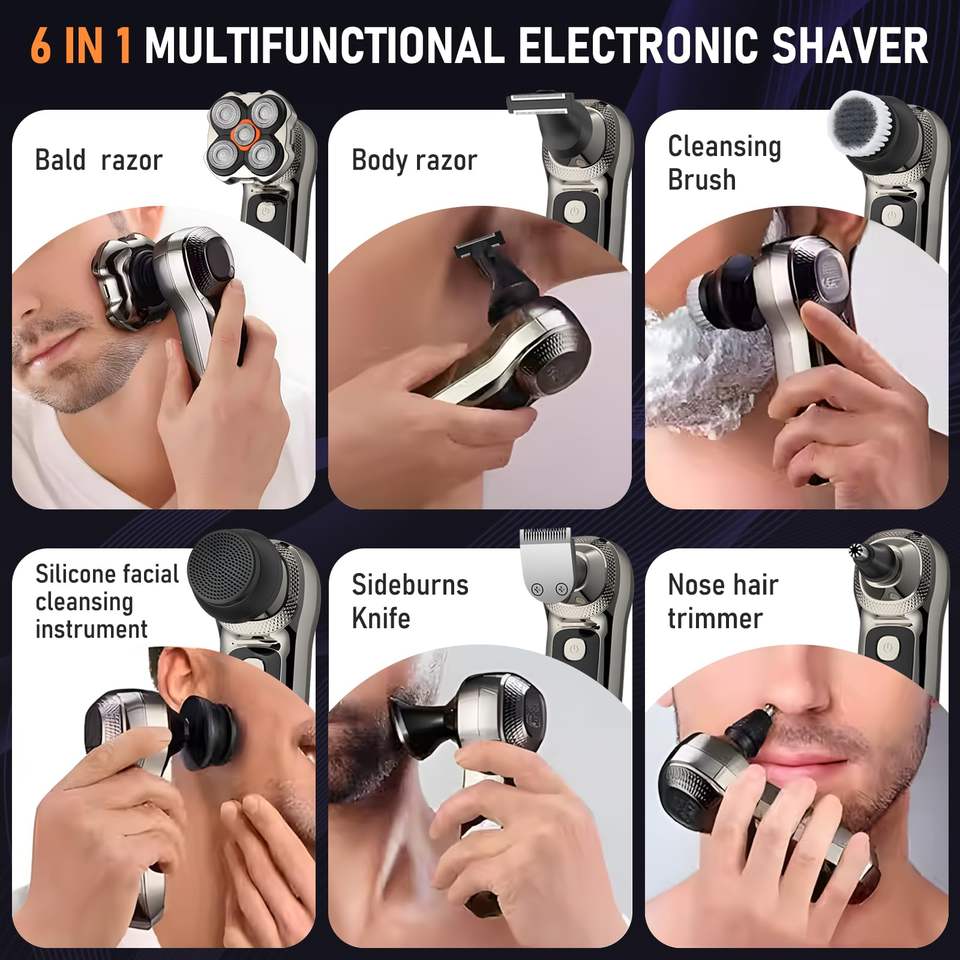 Rasoir Électrique Multifonction 6-en-1 pour Hommes, Étanche IPX7, Utilisation Humide/Sèche, Rasoir Rotatif Sans Fil, Boîtier Métallique pour le Visage