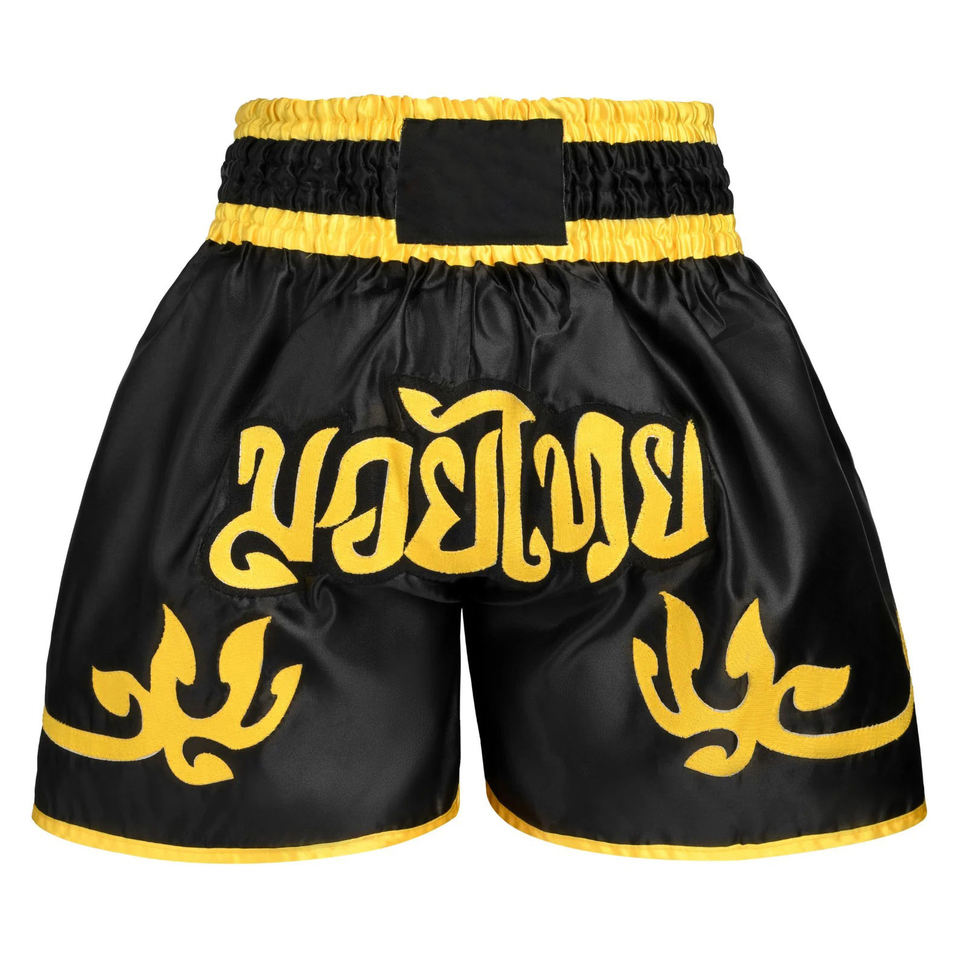 Shorts de Muay Thai de haute qualité avec broderie de logo personnalisée, vêtements de sport MMA, séchage rapide, respirant, polyester, fermeture à cordon.