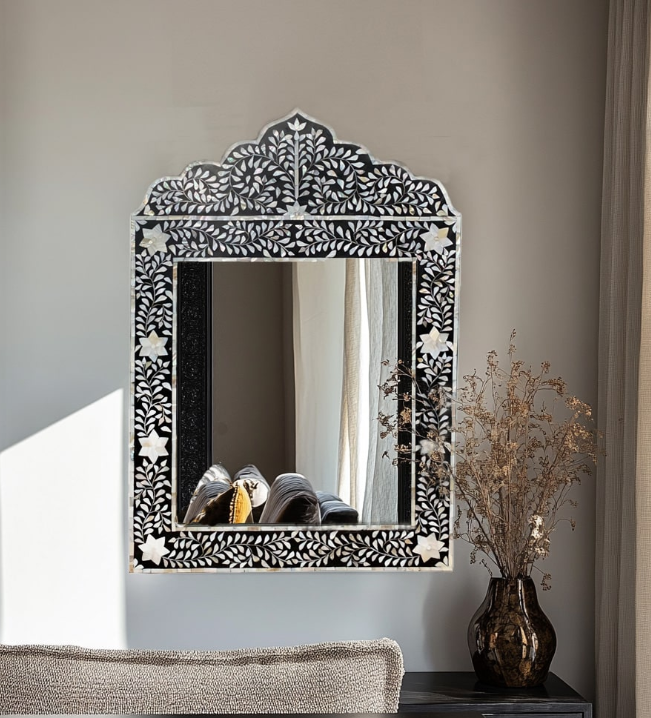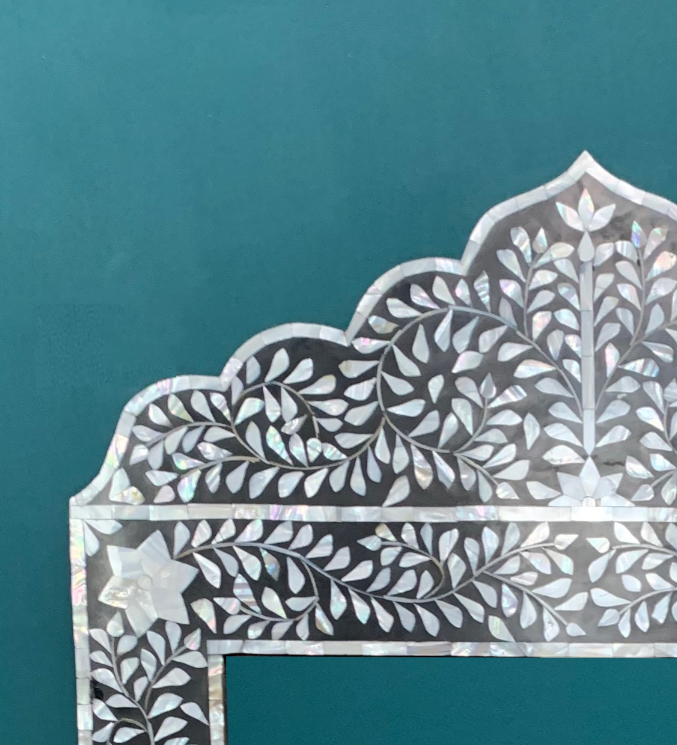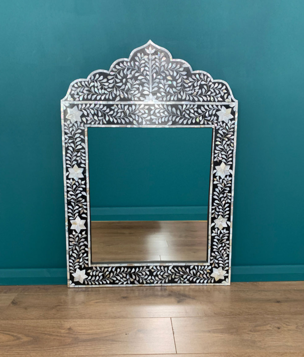 Mughal Design Frame Mirror Mother Pearl Inlay Handmade Exotic Indian Art Wedding Bar Mitzvah Bedroom Home Decor