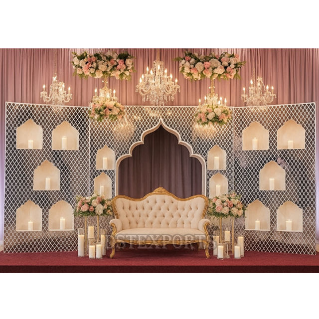 Name:Mughal-Inspired Mirror Panels for Wedding Stage Decor