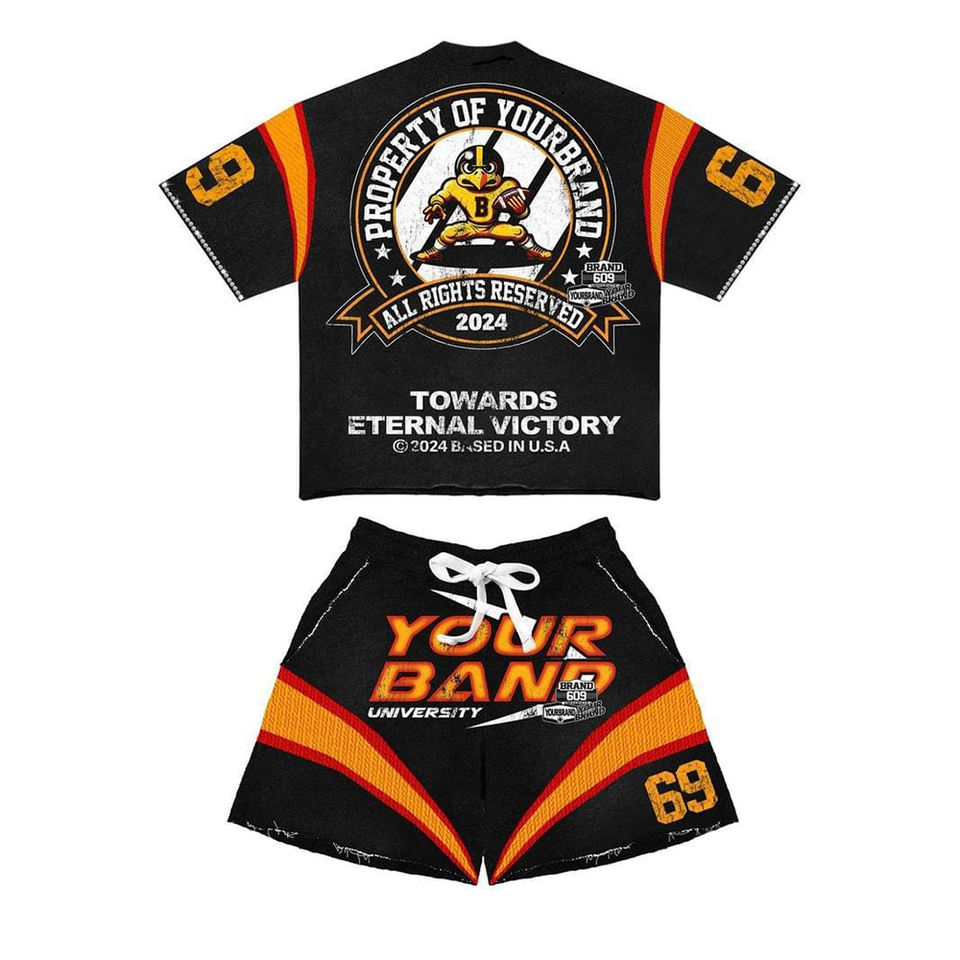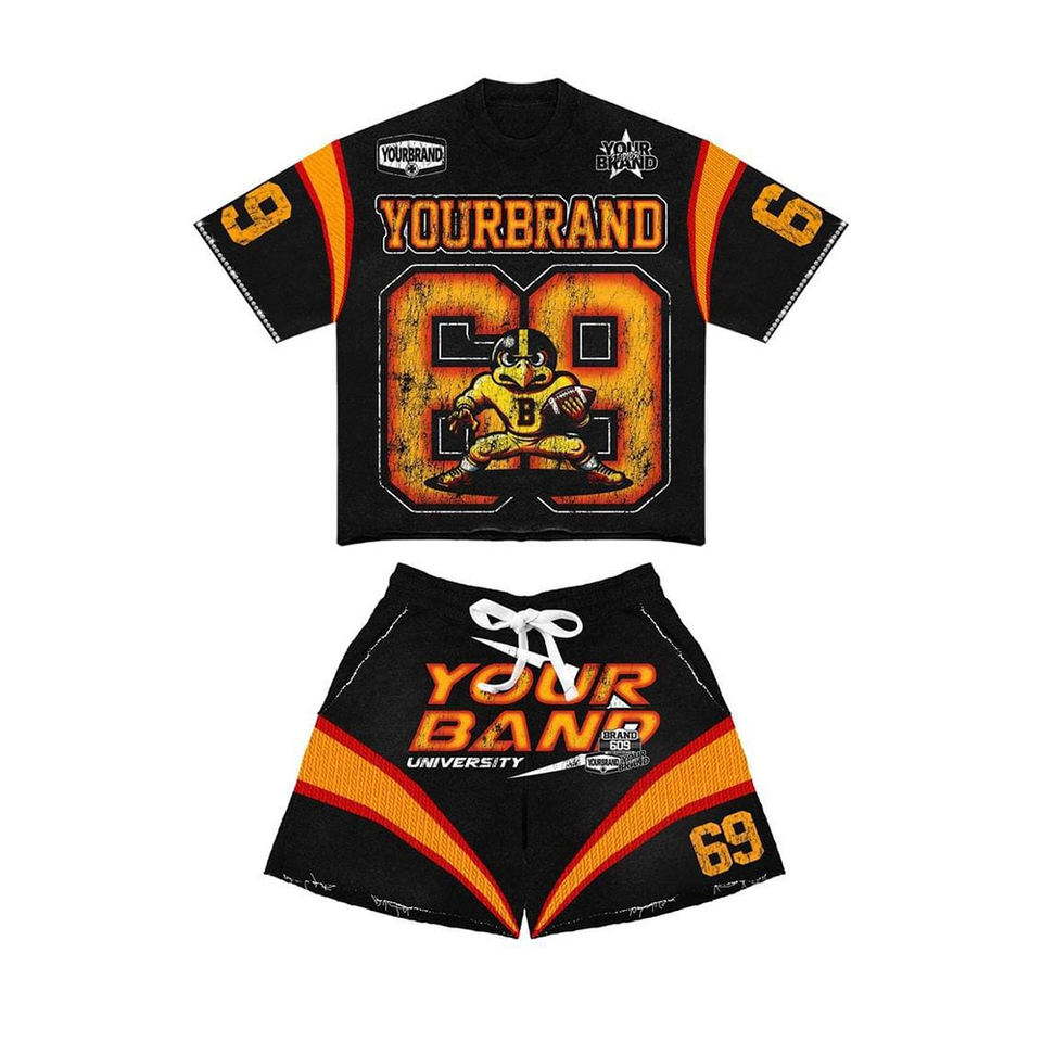Ensemble de chemises courtes en tissu éponge écologique de haute qualité, fabriqué sur mesure par Muid, pour un look décontracté d'hiver, avec un design délavé au soleil et des strass