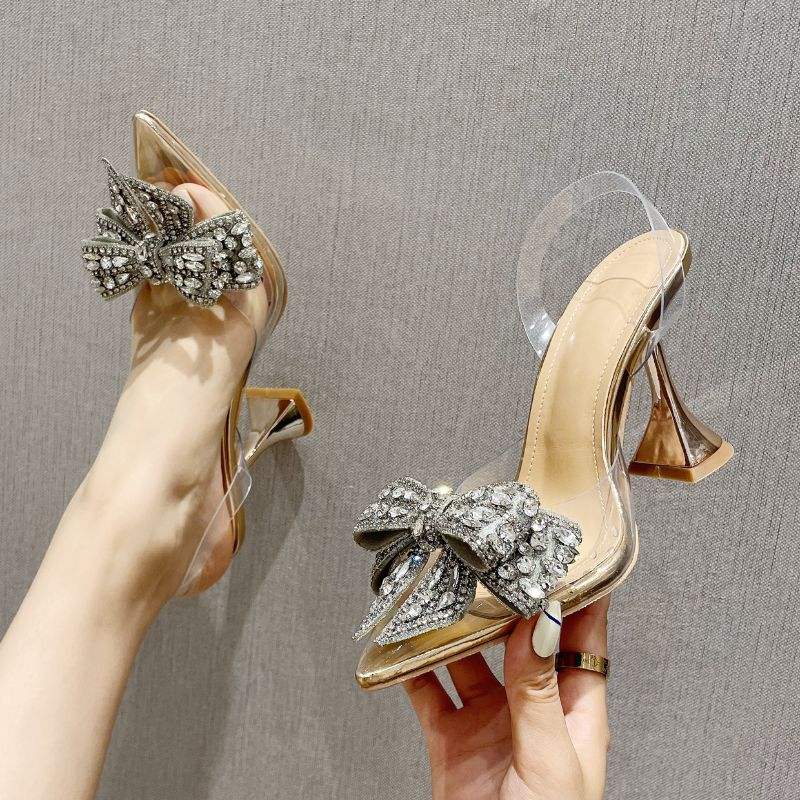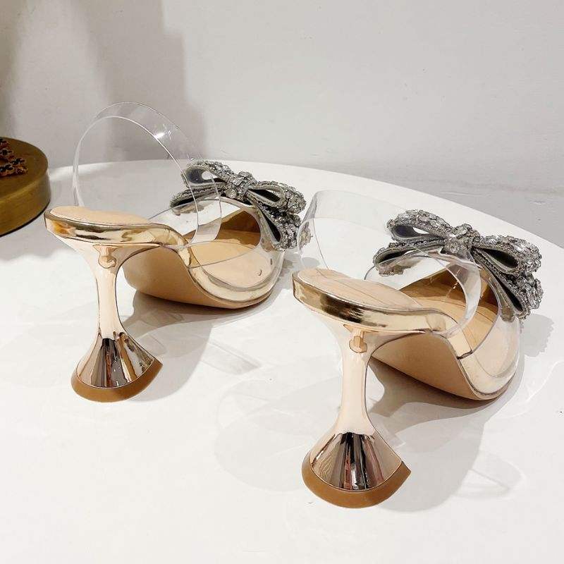 Chaussures à talons hauts pour femme en PVC transparent avec strass dorés, collection 2024