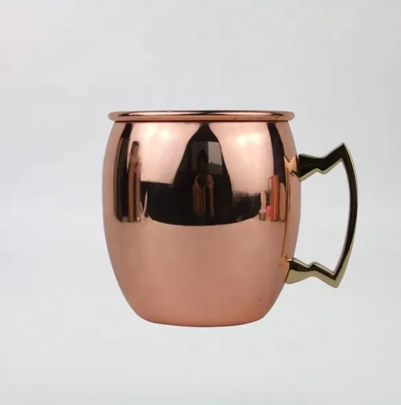 Chope à bière en cuivre plaqué avec poignée en laiton