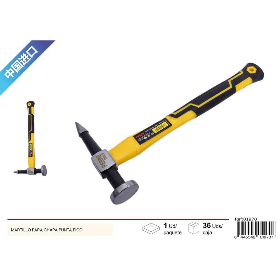 Marteau à bille en acier à manche en fibre de verre pour machiniste, outil de quincaillerie à usage industriel géologique.