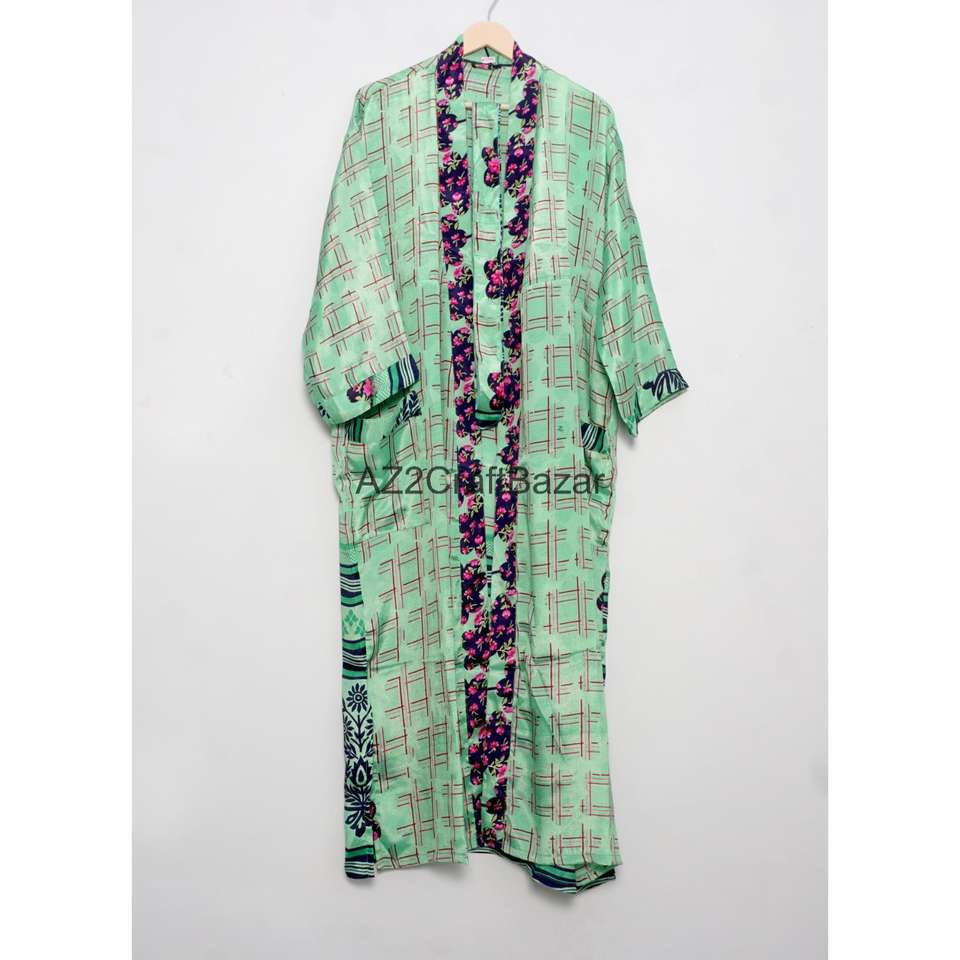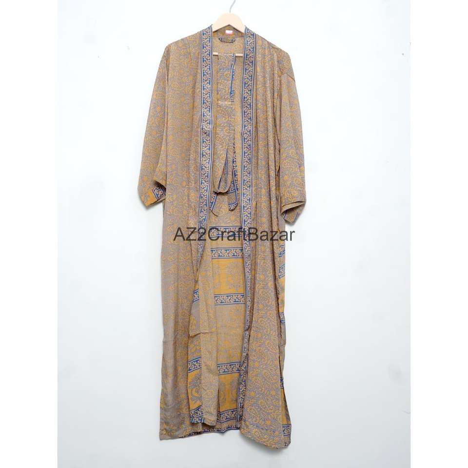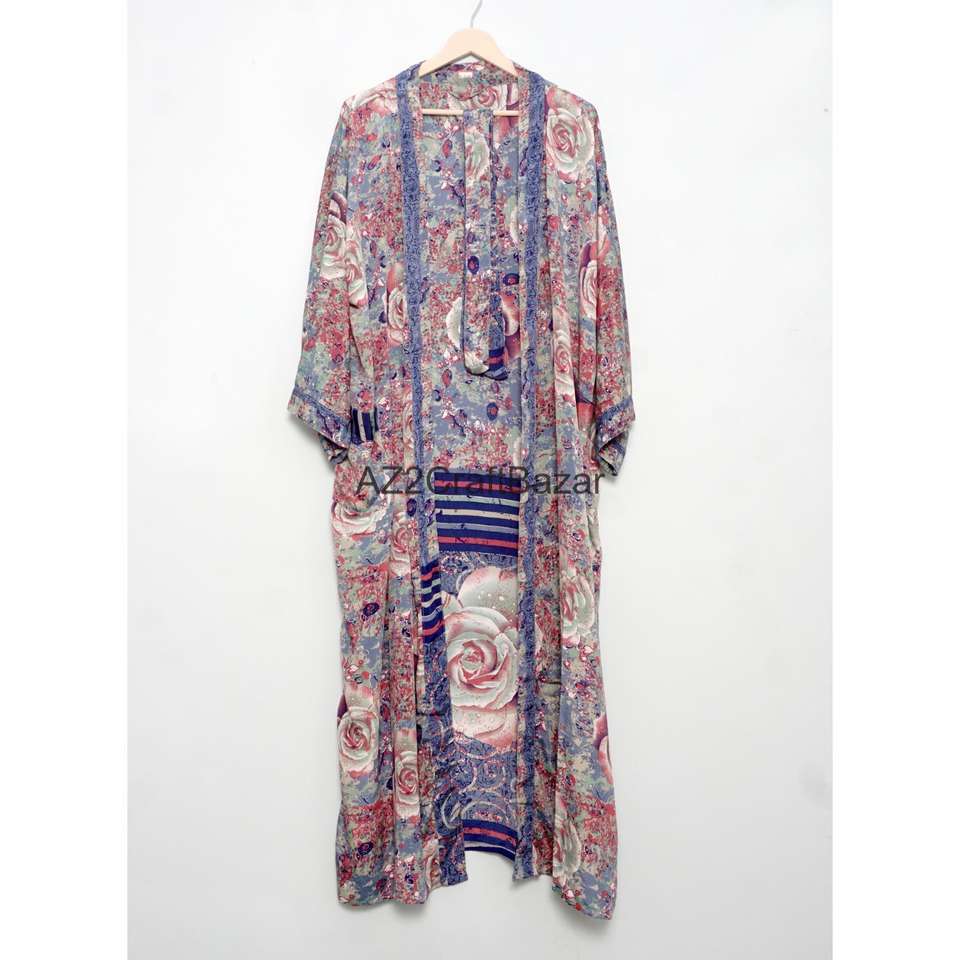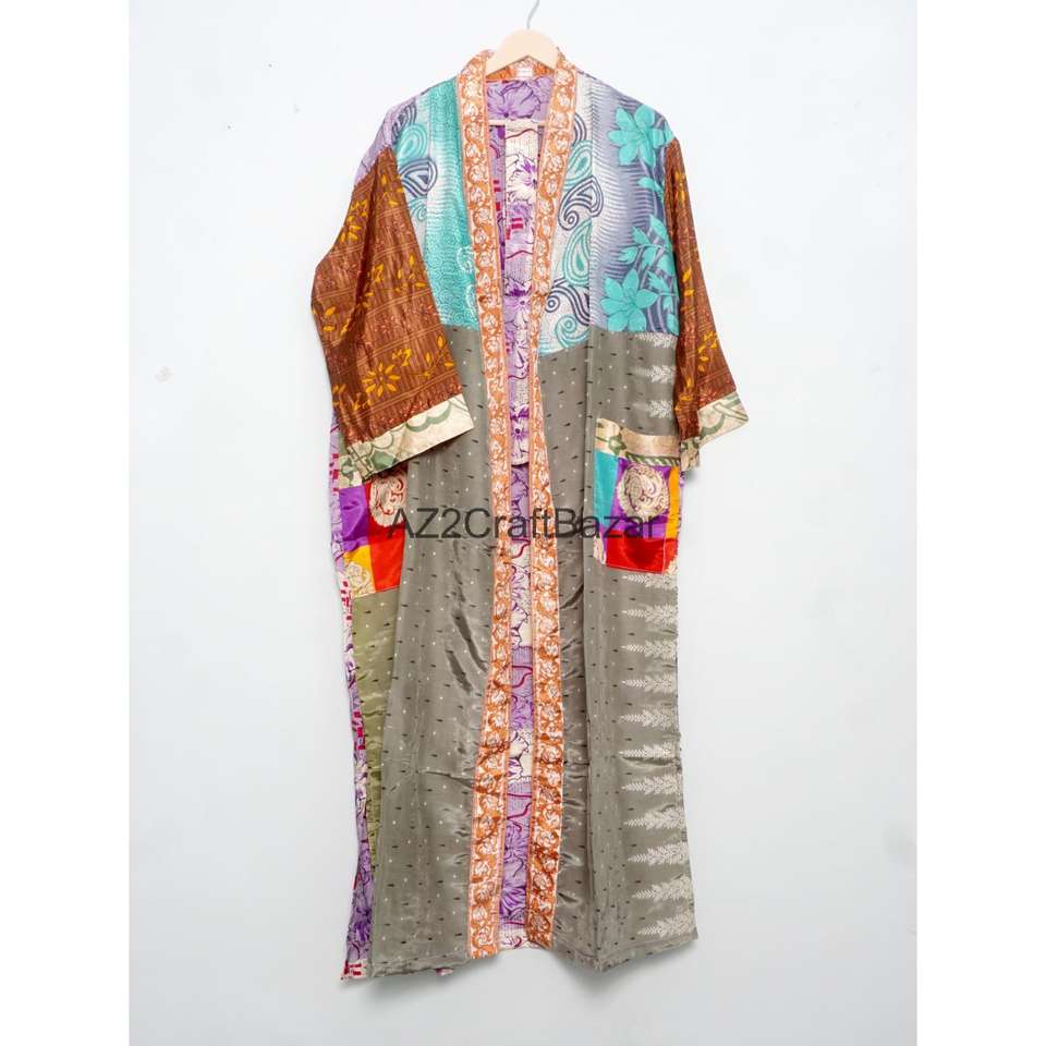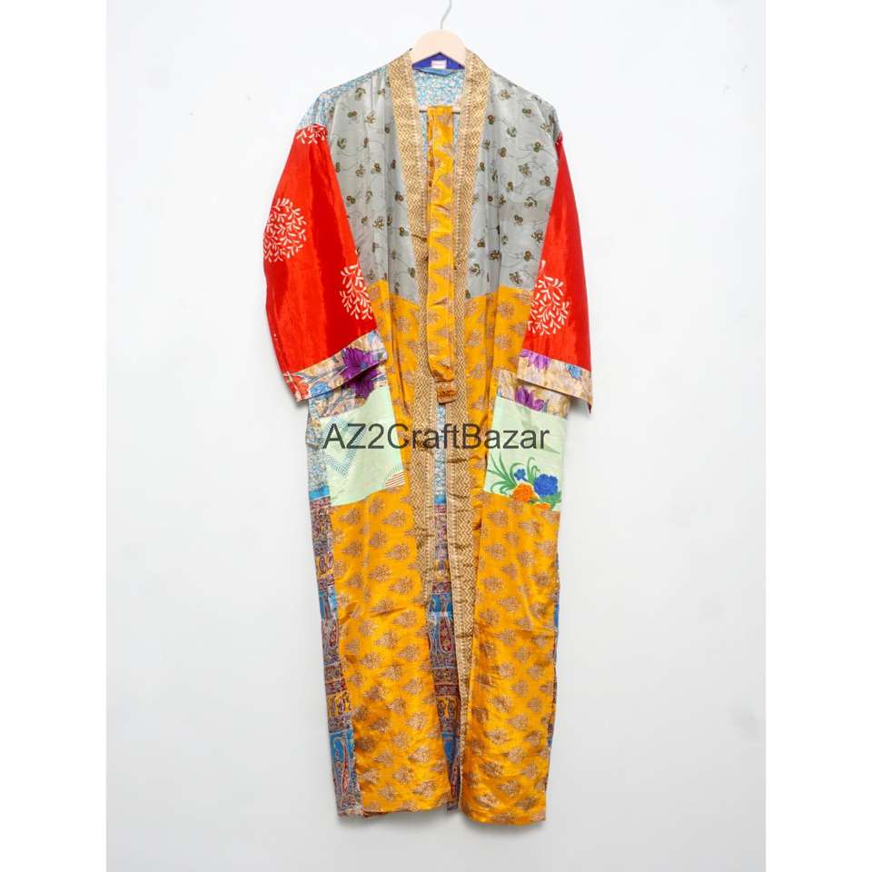 Kimono en Soie 100% Multicolore, Col en V, Fermeture à Cordon, Longueur Intégrale, Manches Trois-Quarts, Doux, Respirant, Taille Unique, Idéal pour les Fêtes