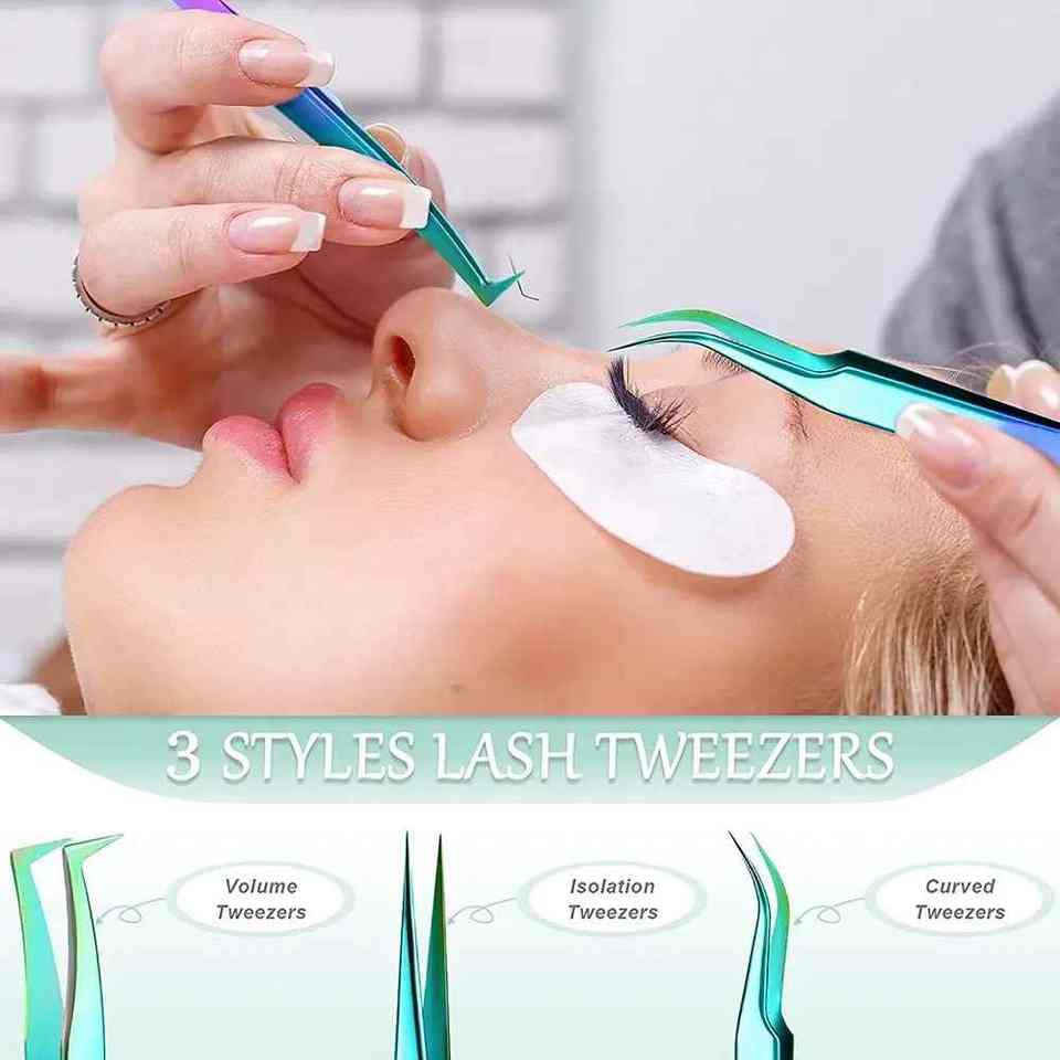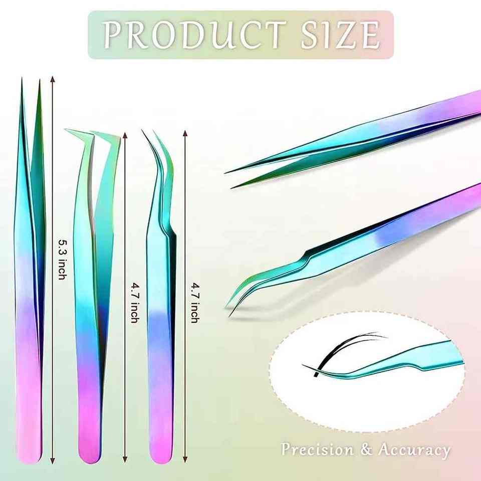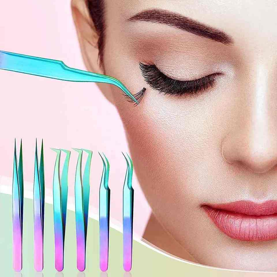 Ensemble de pinces à cils enduites multicolores avec bouts droits incurvés et pointus Kit de pinces à épiler pour cils