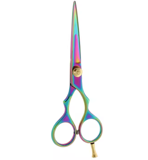 Ciseaux de coiffeur en acier inoxydable à revêtement multicolore Ciseaux de coiffeur à lame droite avec tranchant de rasoir