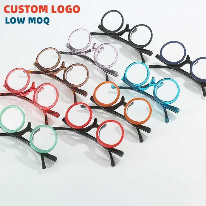 Lunettes de lecture multicolores pour le maquillage avec monture ronde en PC Lentilles anti-lumière bleue Portable Colorful Wome