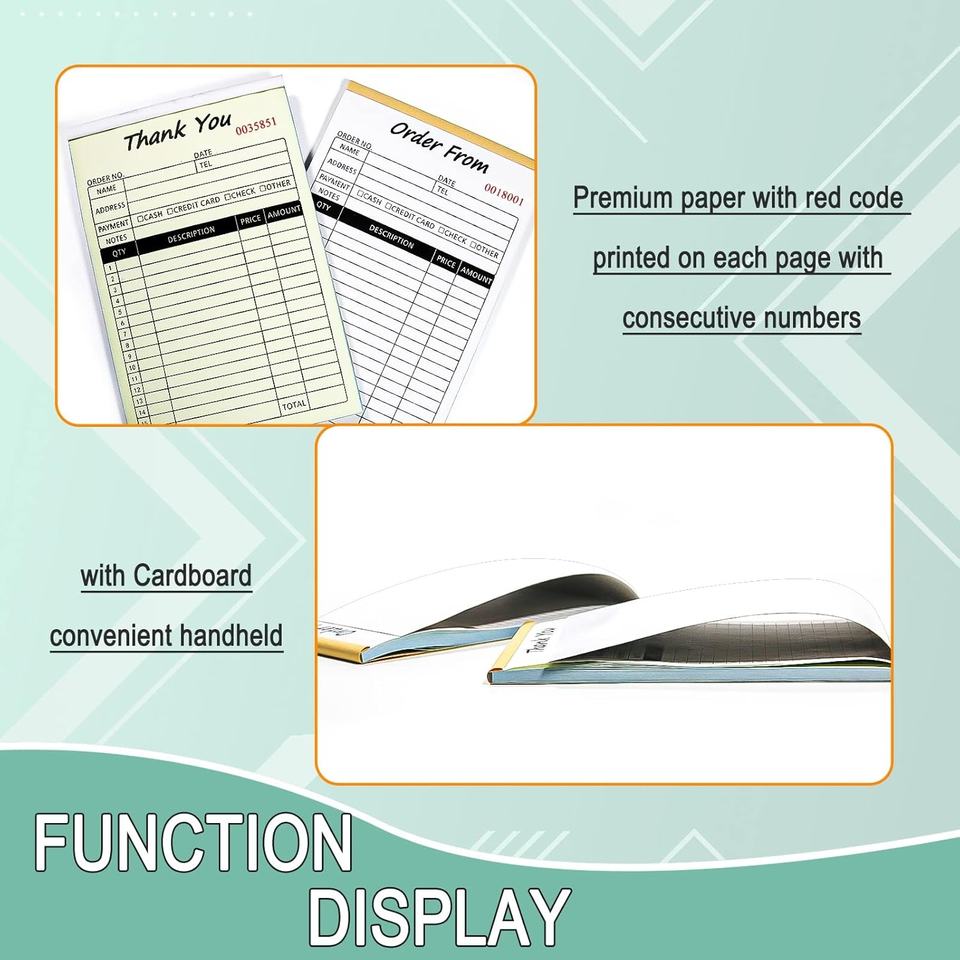 Carnet de reçus personnalisé multicolore blanc, jaune, rose, autocopiant avec numérotation consécutive pour salon, garage, taxi