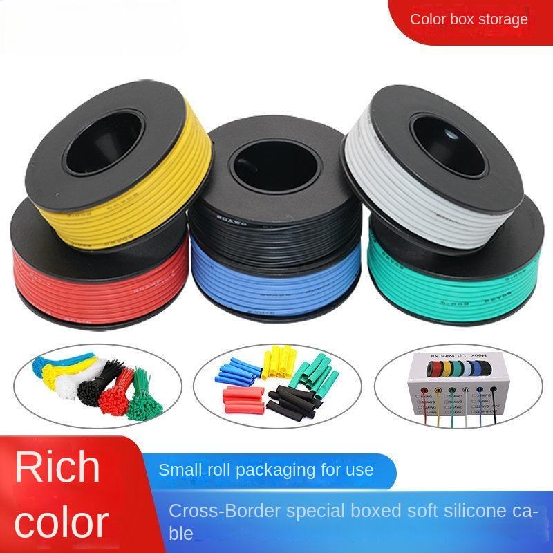 Boîte de jonction ignifuge multicolore, câble flexible en silicone, conducteur en cuivre étamé recouvert d'aluminium, fil en caoutchouc pour le stockage